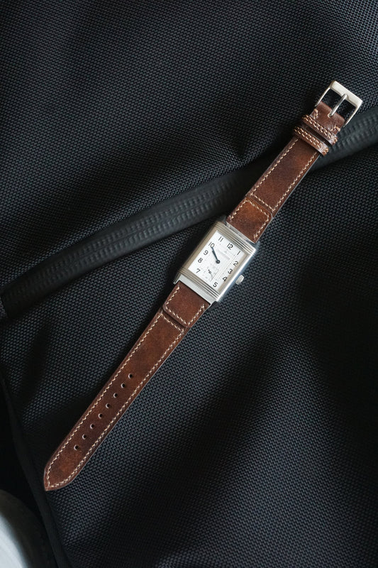 Reverso style watch strap in museum calf watch strap